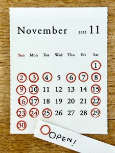 2018年10月以降、団体を含む全てのご予約は営業日のみとさせていただきます。